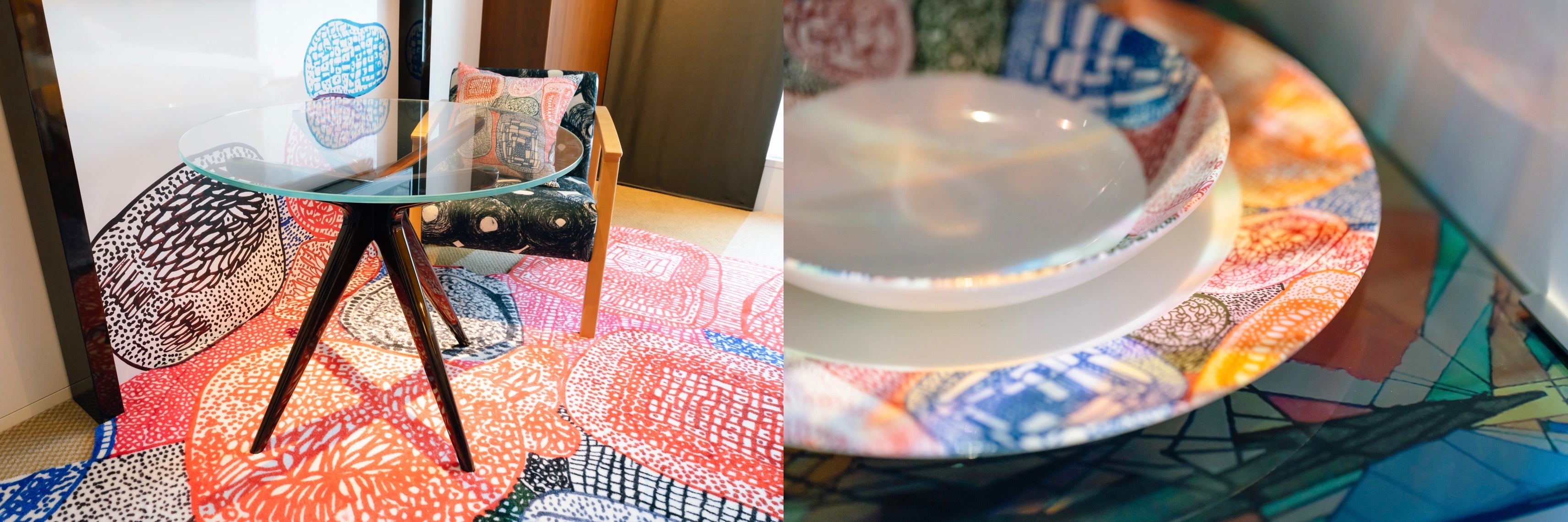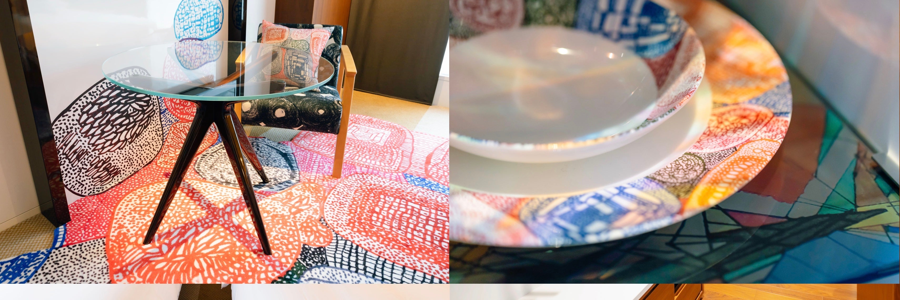 豊かな色彩、形が連続し、キャンバスを飛び出して、広がり続けていくような異彩を放つ力を、アートから感じます。客室で過ごすひととき、広がり続けるアートの中に入り込んだような、豊かな時間を体感していただけるよう、空間を紡ぎだしました。さまざまな箇所に溶け込んだアートを見ながらたくさんの会話と発見が生まれれば幸いです。