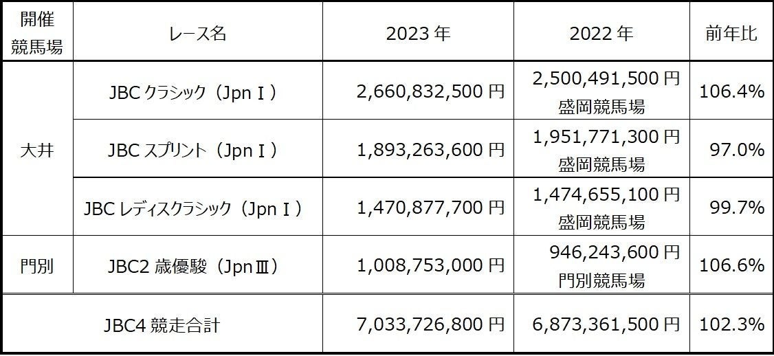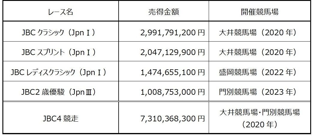 ※JBCクラシック・スプリント・レディスクラシック及びJBC4競走については、JRA京都競馬場での開催