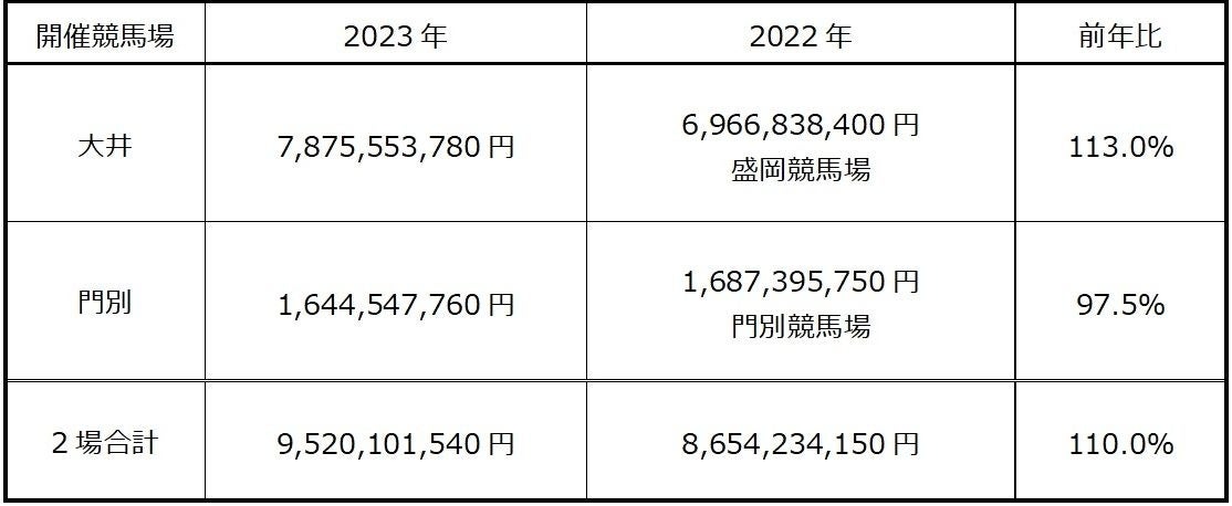 ※JRA京都競馬場での開催(2018年)を除く2場合計の地方競馬レコードは、2020年大井競馬場と門別競馬場における10,088,541,950円