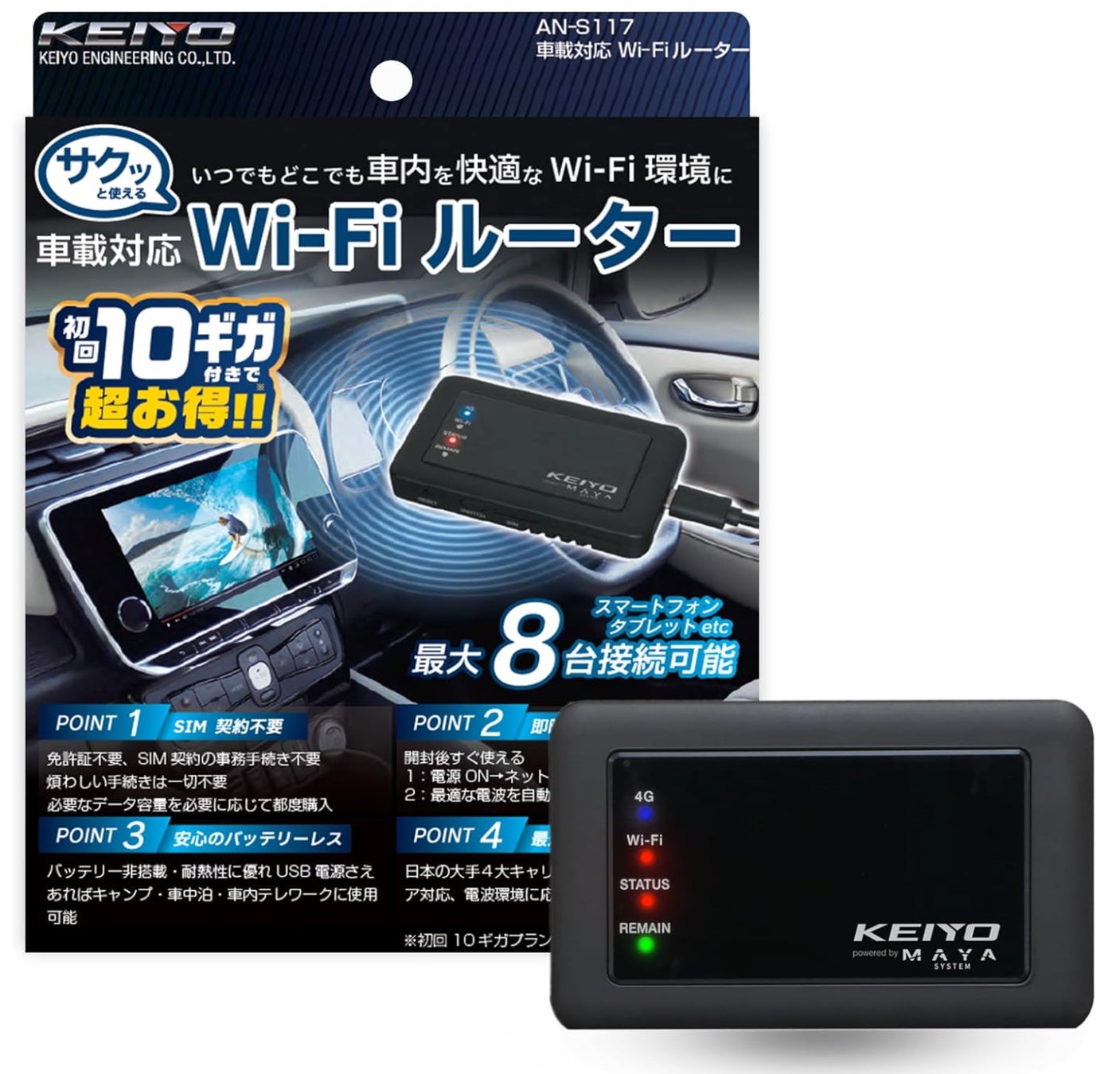 【車載対応Wi-Fiルーター】[サクッとWi-Fi]バッテリーレス USB電源使用 車用Wi-Fi 買い切り 契約不要 リチャージ式Wi-Fi マルチキャリア切り替え AN-S117 (10 GB/有効期間30日)