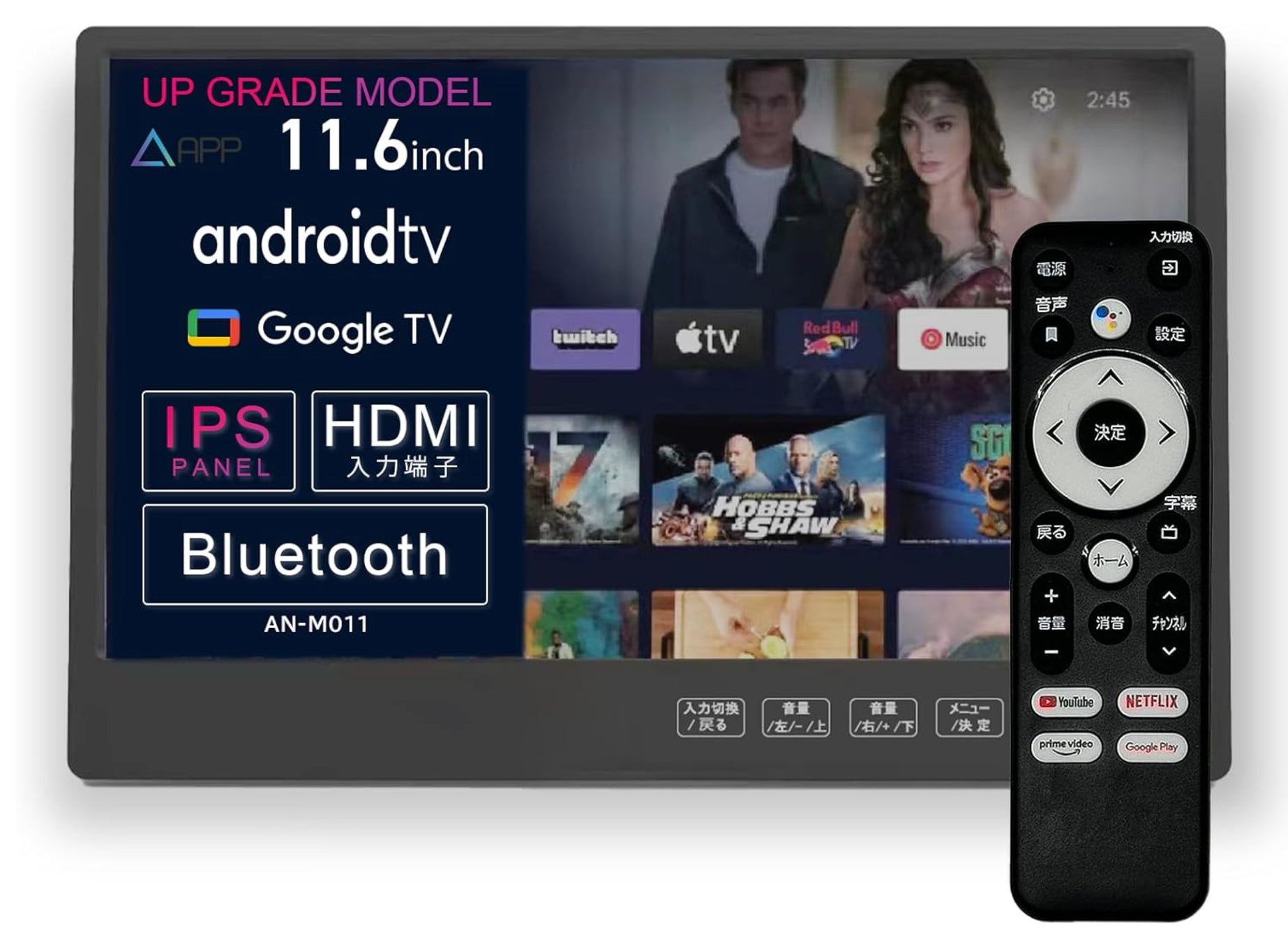 【ヘッドレストリアモニター】 11.6インチ IPSパネル搭載 広視野角Android TV 音声リモコン付き スマートリアモニターメーカー保証1年 AN-M011 (AN-M011)