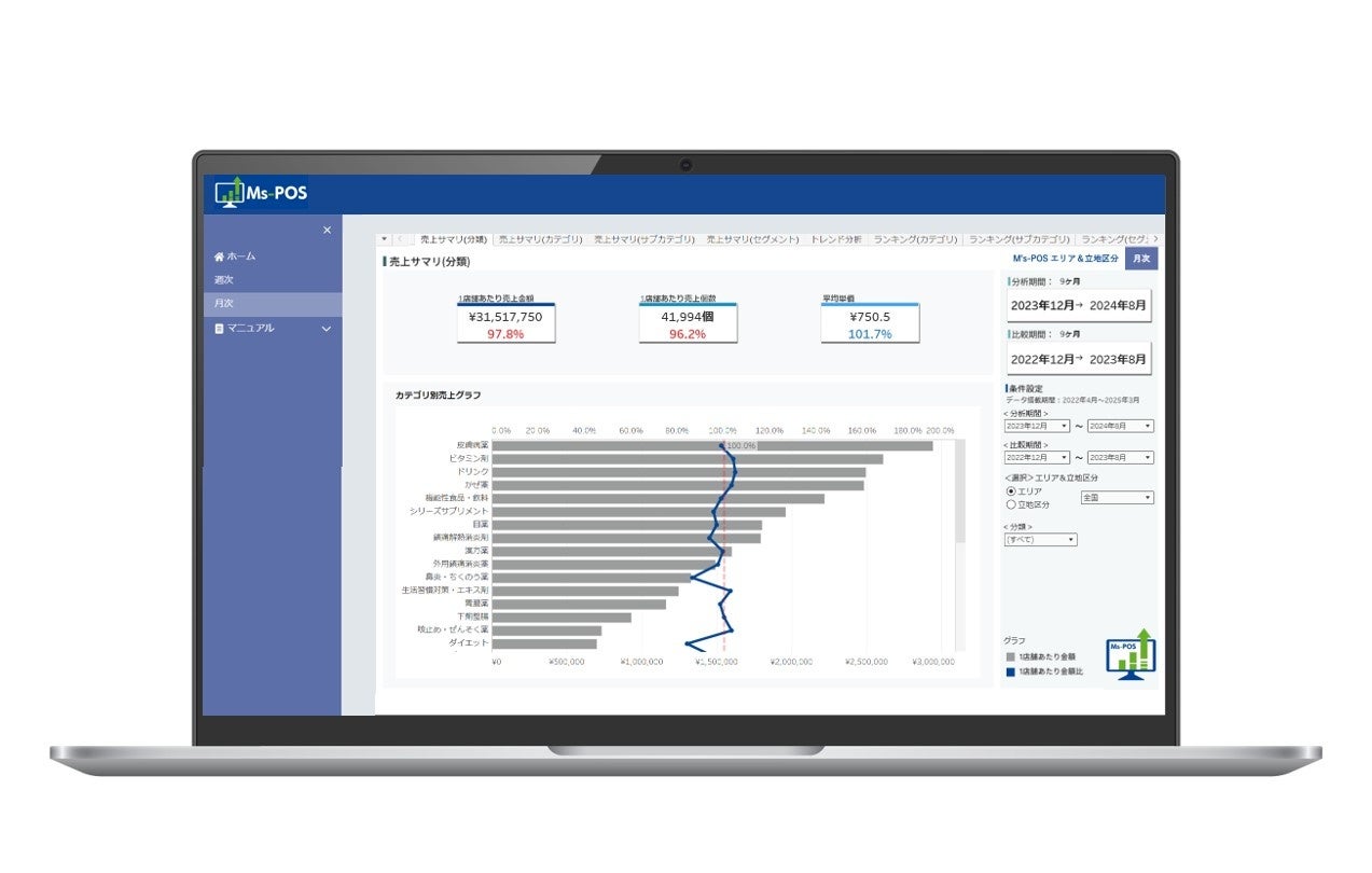 このような背景から、両社は数年前より、ヘルスケアメーカーに向け、生活者の悩みや機能、売場区分の実態に合わせて分析できる購買データ分析クラウドサービスを広く提供すべく、協業をすすめてまいりました。そしてこのたび、ヘルスケアメーカーの現場で使いやすいよう操作性を高めた「Ms-POS」が完成したことから、本格提供が開始されることとなりました。