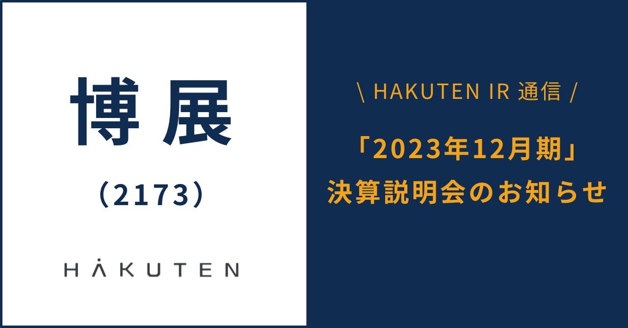 株式会社 博展(本社:東京都中央区、代表取締役 社長執行役員 COO:原田 淳)は、2023年12月期の決算説明会を会場およびオンラインにて開催いたします。なお、決算発表は2月14日(水)を予定しております。