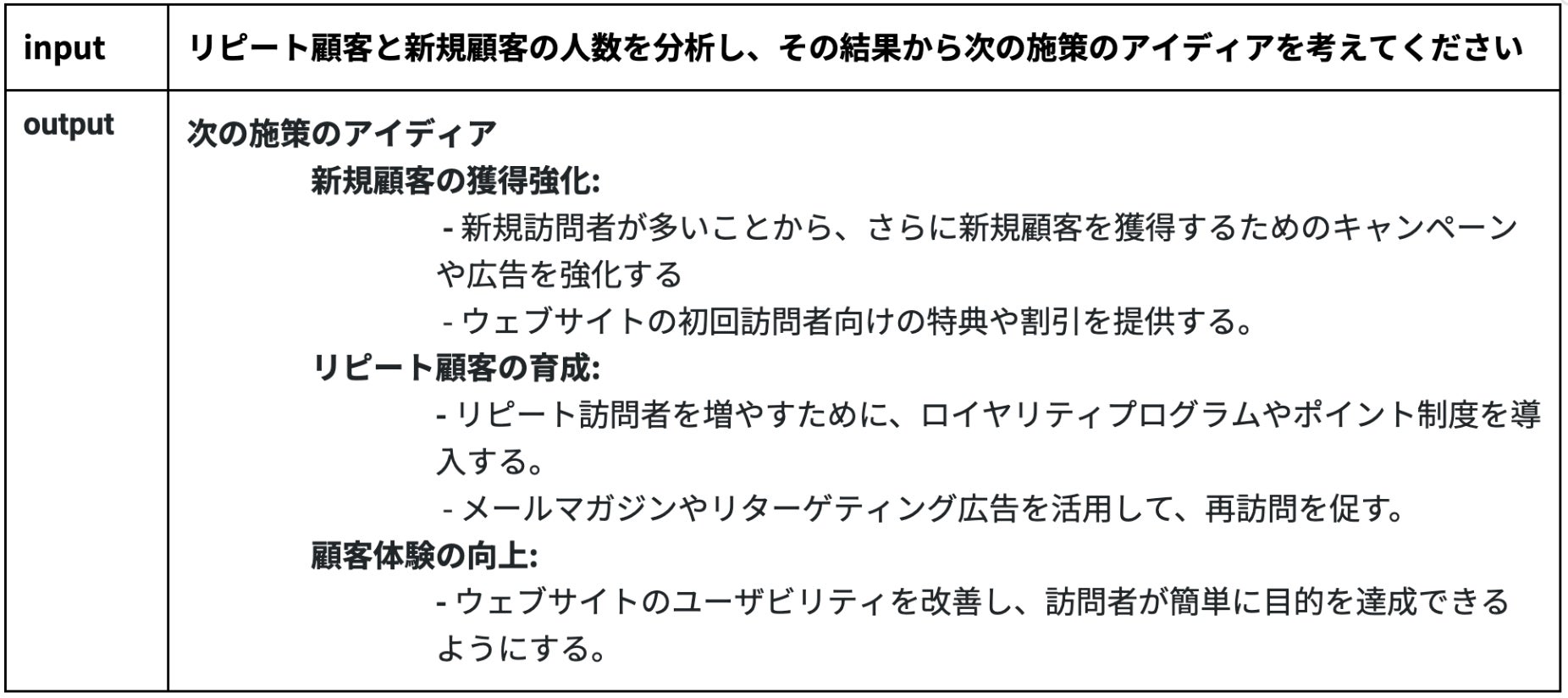 データの抽出・分析結果を元に洞察を行い、施策のアイデアなどのインサイトを提供することが可能です。