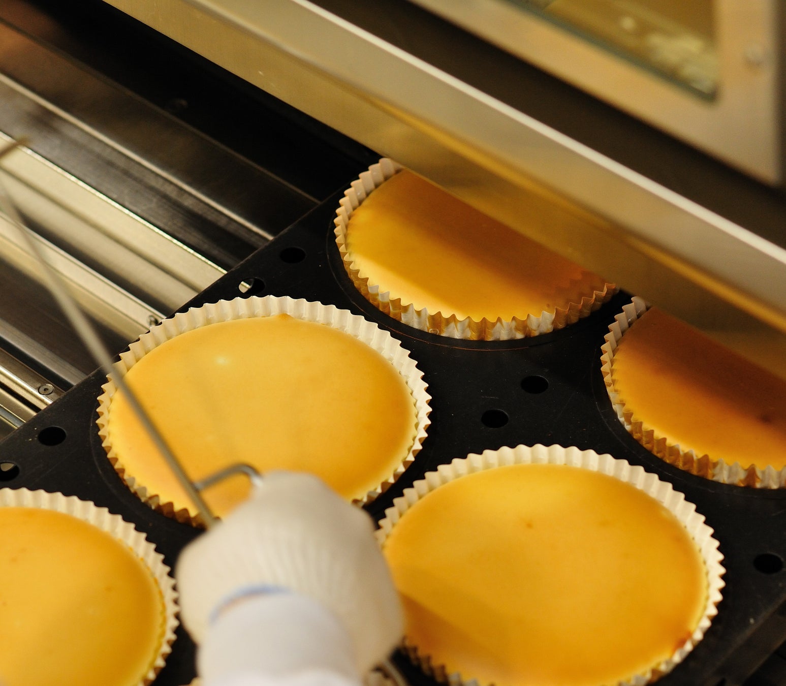 生地の状態を見極める、生地を型に流す、生地を窯に入れる、焼き色を確認するなど、どの工程にも職人の目や手を入れ、手間をかけることを忘れません。些細な変化も見逃さない、職人の目と手仕事へのこだわりが、美味しい御用邸チーズケーキを支えています。