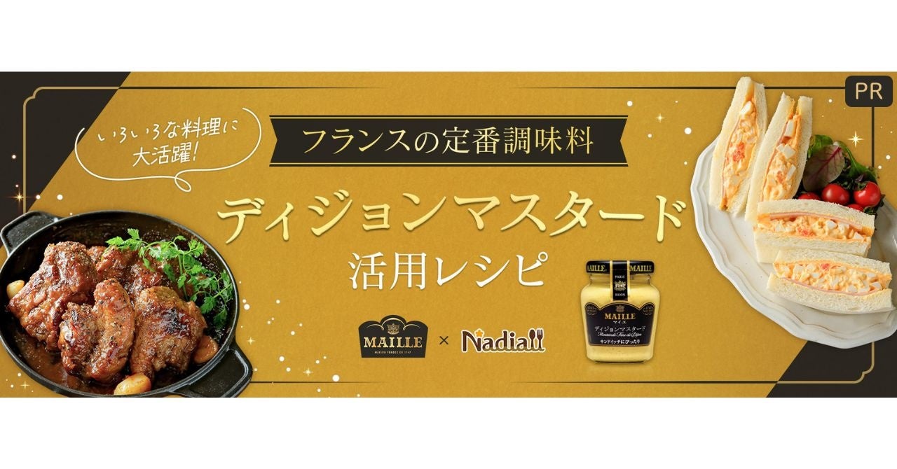 Nadia株式会社(東京都港区/代表取締役社長 葛城嘉紀 以下「Nadia」)とエスビー食品株式会社( 東京都中央区/代表取締役社長 池村 和也 、以下「エスビー食品」)がタイアップし、「MAILLE ディジョンマスタード」の認知・消費拡大を目的に、オリジナルレシピを掲載した企画ページを公開いたしました。