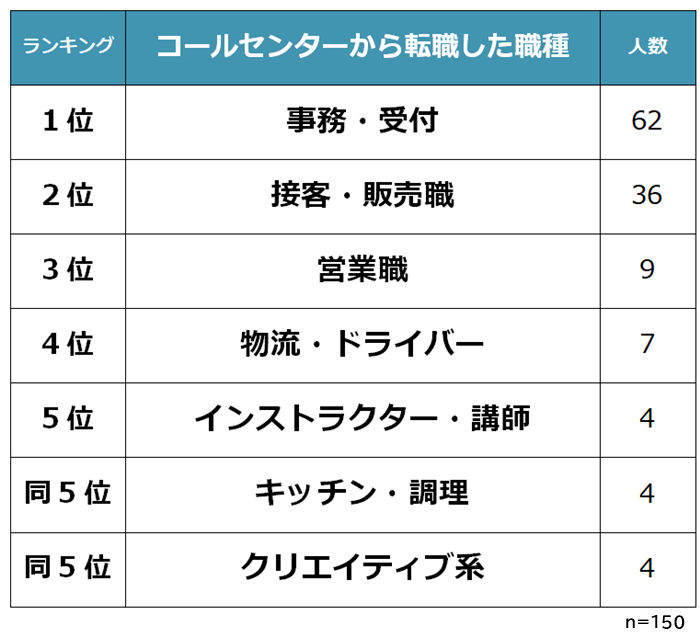 コールセンターから転職した仕事1位は「事務・受付」
