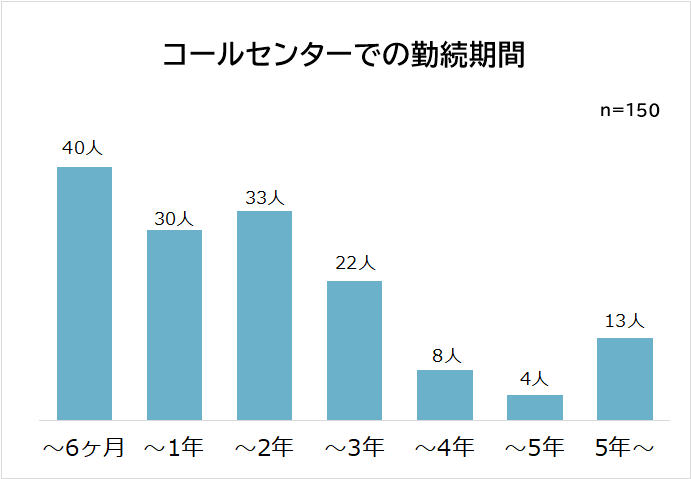 ・コールセンターで働いていた期間の平均は「2年5ヶ月」