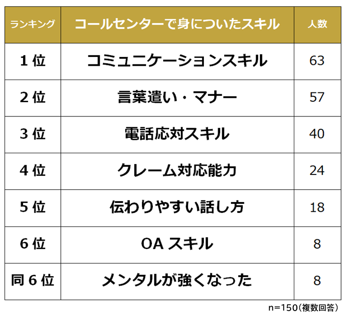 しかし、コールセンターで得たスキルが他の職場でも役立っていると感じている人も多いとわかります。
