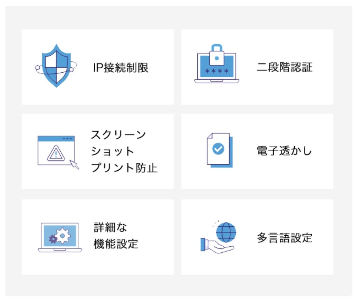 IP接続制限設定で指定された場所で承認されたユーザーのみが機密文章への閲覧が可能になるように設定でき、ユーザーのPCには何も資料が残らず、機密資料の流出を防ぐことができます。