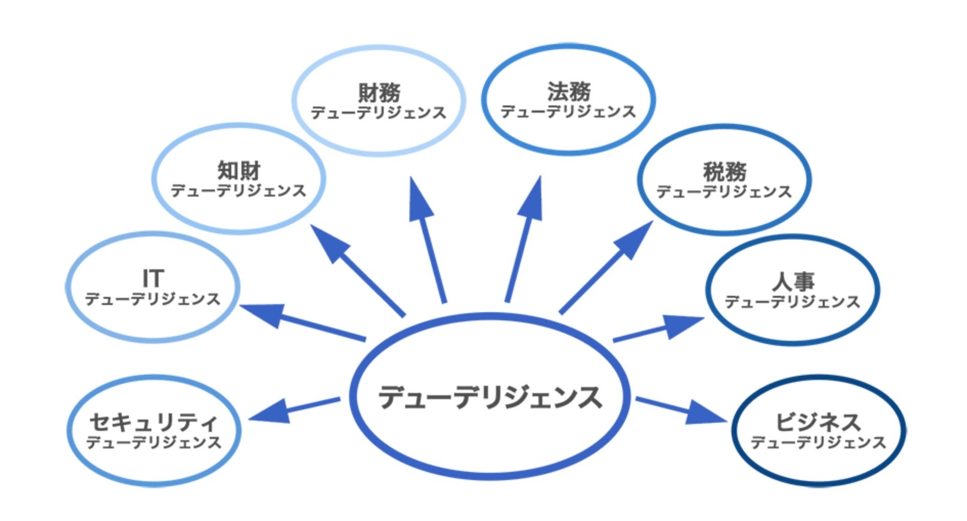 M&Aや組織再編を⾏う際に、買収対象企業の経営環境、事業内容などを調査し、財政上の問題点や法務⾯のリスク、企業の収益⼒などについて分析を⾏うことで、正確な企業経営の実態やビジネスモデルなどを把握するために、財務、法務、税務、⼈事、ビジネス、知財、IT、セキュリティなど多岐に渡って調査が⾏われます。