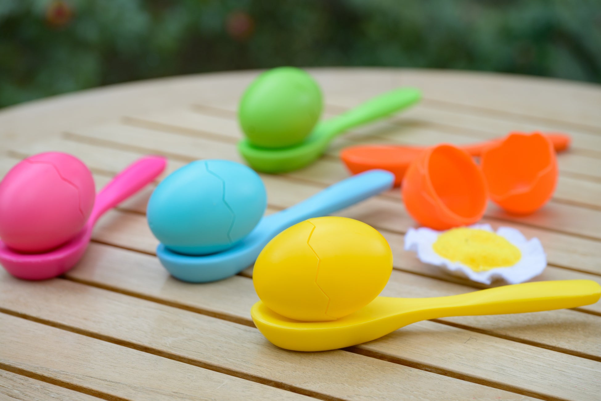 スプーンに乗せたたまごを落とさないよう運ぶゲームです。さまざまな障害物アイテムを使ったり、ルールを作ったり自由に遊ぶことができます。