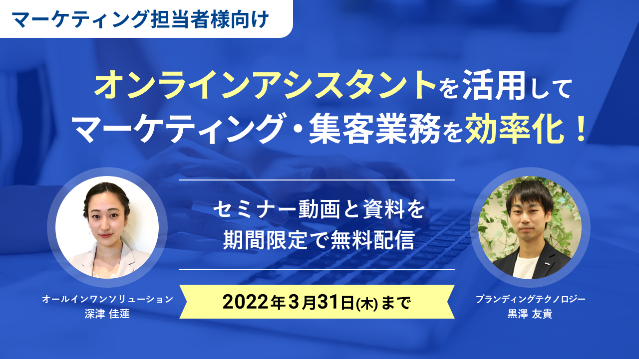 オンラインアシスタントを活用して マーケティング・集客業務を効率化するための「解説動画・資料」を2022年3月31日(木)までの期間限定で無料公開。