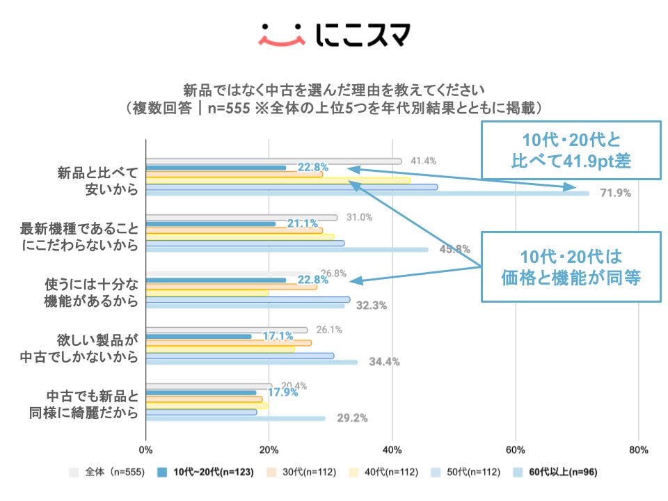 5. 中古スマートフォンを選ぶ理由、60代以上は71.9%が「価格が安いから」