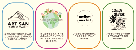 各マーケットの特色を出しながら、お越しいただくお客さまへそれぞれのマーケットの良さを体感いただき1日で複数のマーケットを体験いただけるイベントです。
