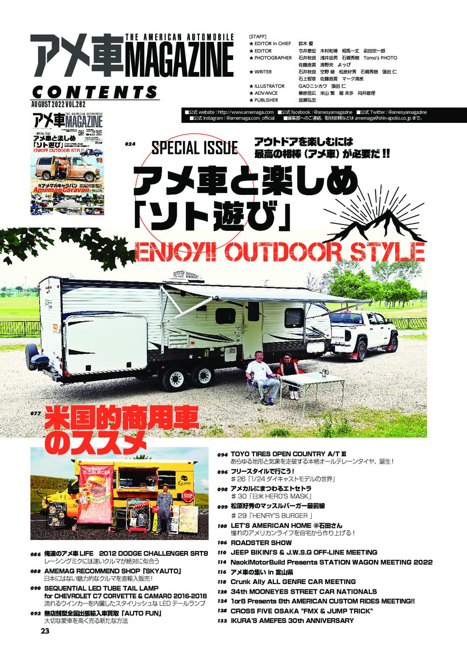 アウトドアを楽しむには最高の相棒(アメ車)が必要だ!【アメ車と楽しめ「ソト遊び」】を大特集! アメ車MAGAZINE8月号は2022年6月16日(木)発売!