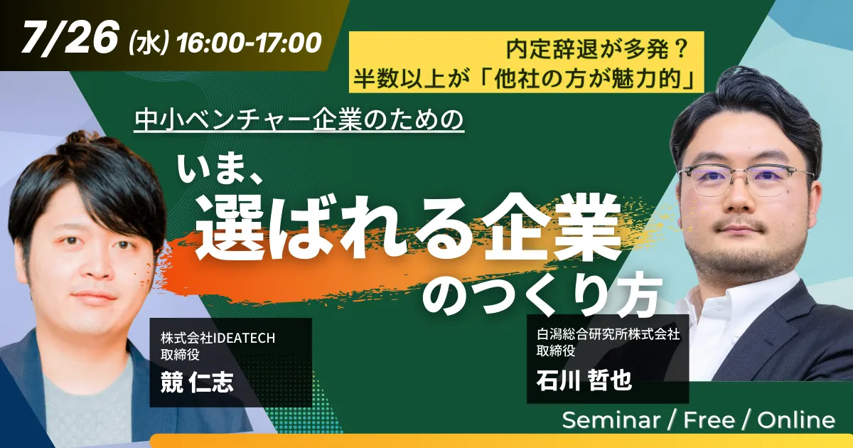 【IDEATECH × 白潟総合研究所|共催セミナー開催】中小ベンチャー企業のための「いま、選ばれる企業のつくり方」とは?
