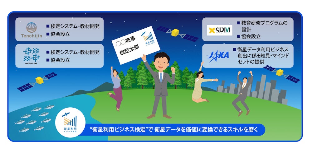 本取り組みは、天地人とsorano meが衛星データ利用人材拡大を目指し開発を進めている教材及び検定システム開発に、慶應SDMが社会課題解決型宇宙人材育成プログラムの実施等を通じた教育研究プログラムの設計のノウハウと、JAXAがJ-SPARC共創活動に取り組む中で培ってきた衛星データを事業者の提供価値に変換するノウハウを組み合わせることで、衛星利用ビジネス検定の事業化を目指すものです。