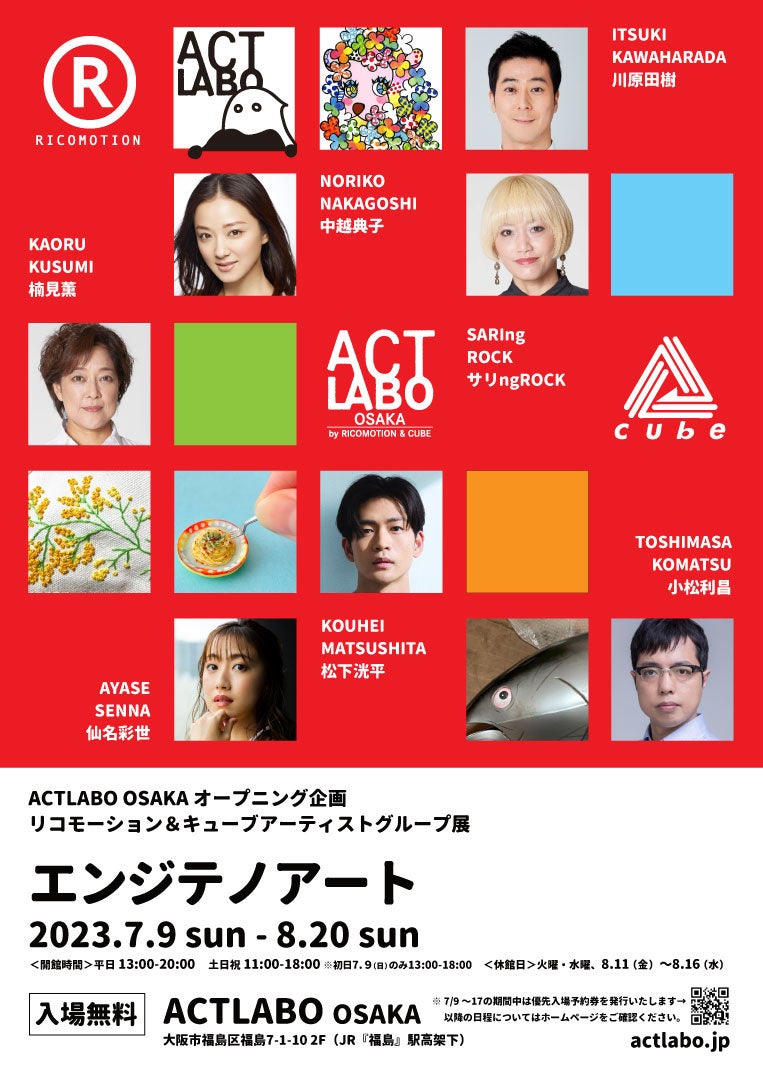 そんな様々な未来予想図が描かれている「ACTLABO OSAKA」は、会見翌日9日から一般公開され、リコモーション&キューブアーティストによるグループ作品展「エンジテノアート」が行われている。