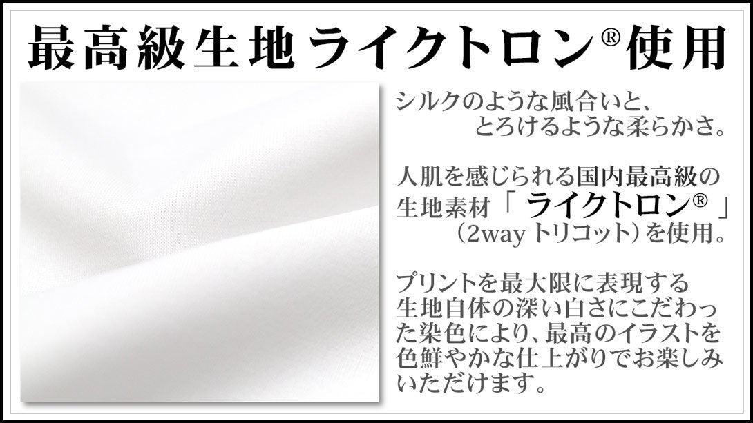 生地は「ライクトロン」(2way トリコット)を使用、「ふんわり」「もっちり」とした感触、抱きしめたときには「ギュッと感」が得られる国内最高級の生地となります。