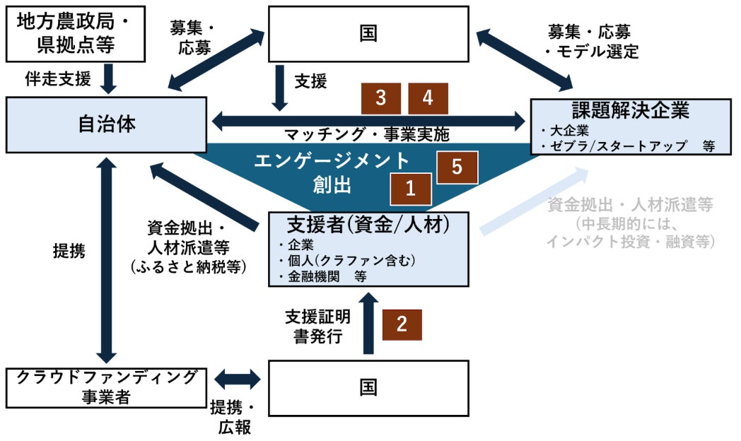 ※本事業は、「『農山漁村』インパクト創出ソリューション実装プログラム」とは異なり、地域ごとに中間支援組織を設置し、官民共創マッチングによる課題解決を推進する“地域起点”の案件形成を趣旨とします。