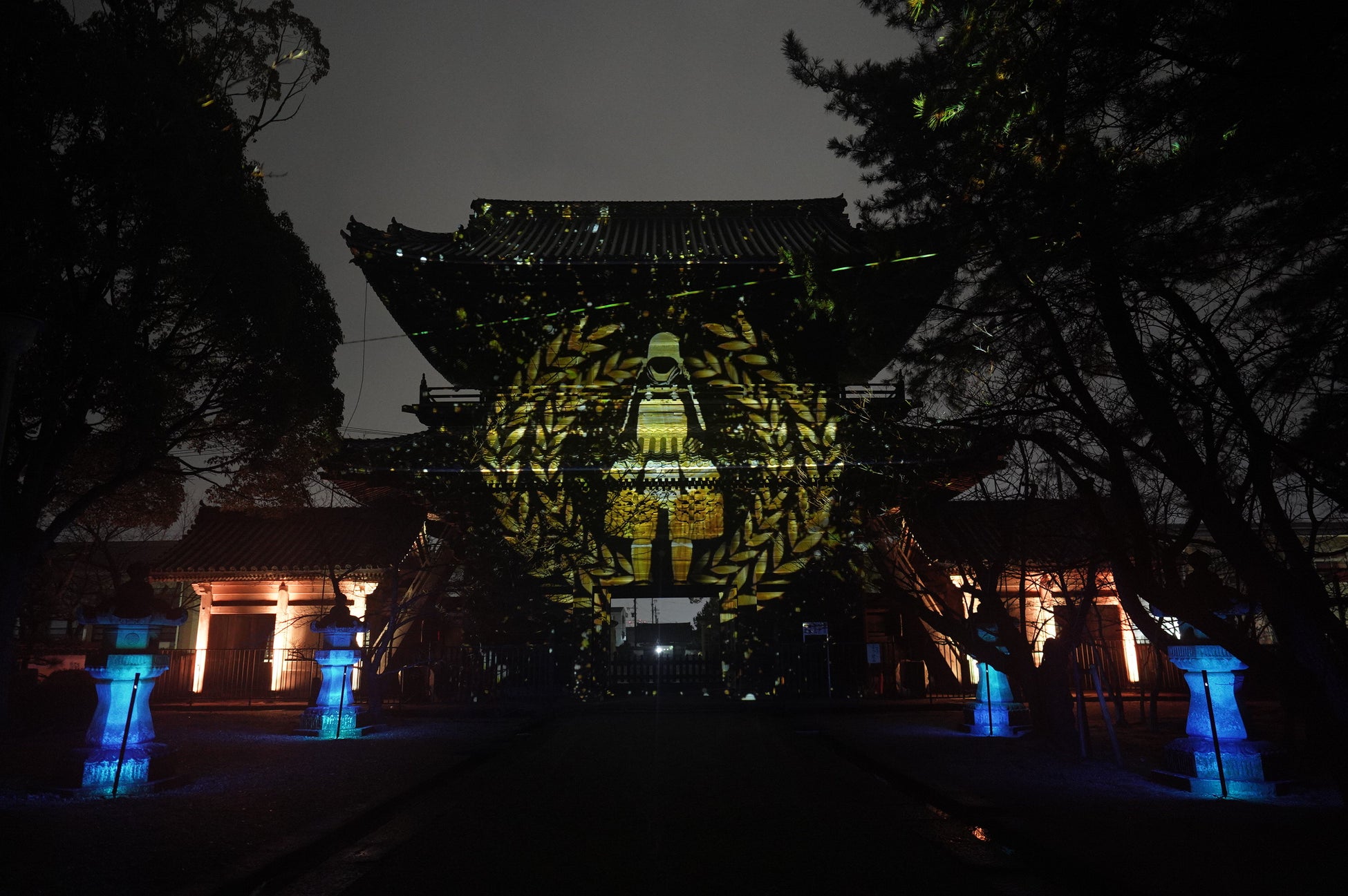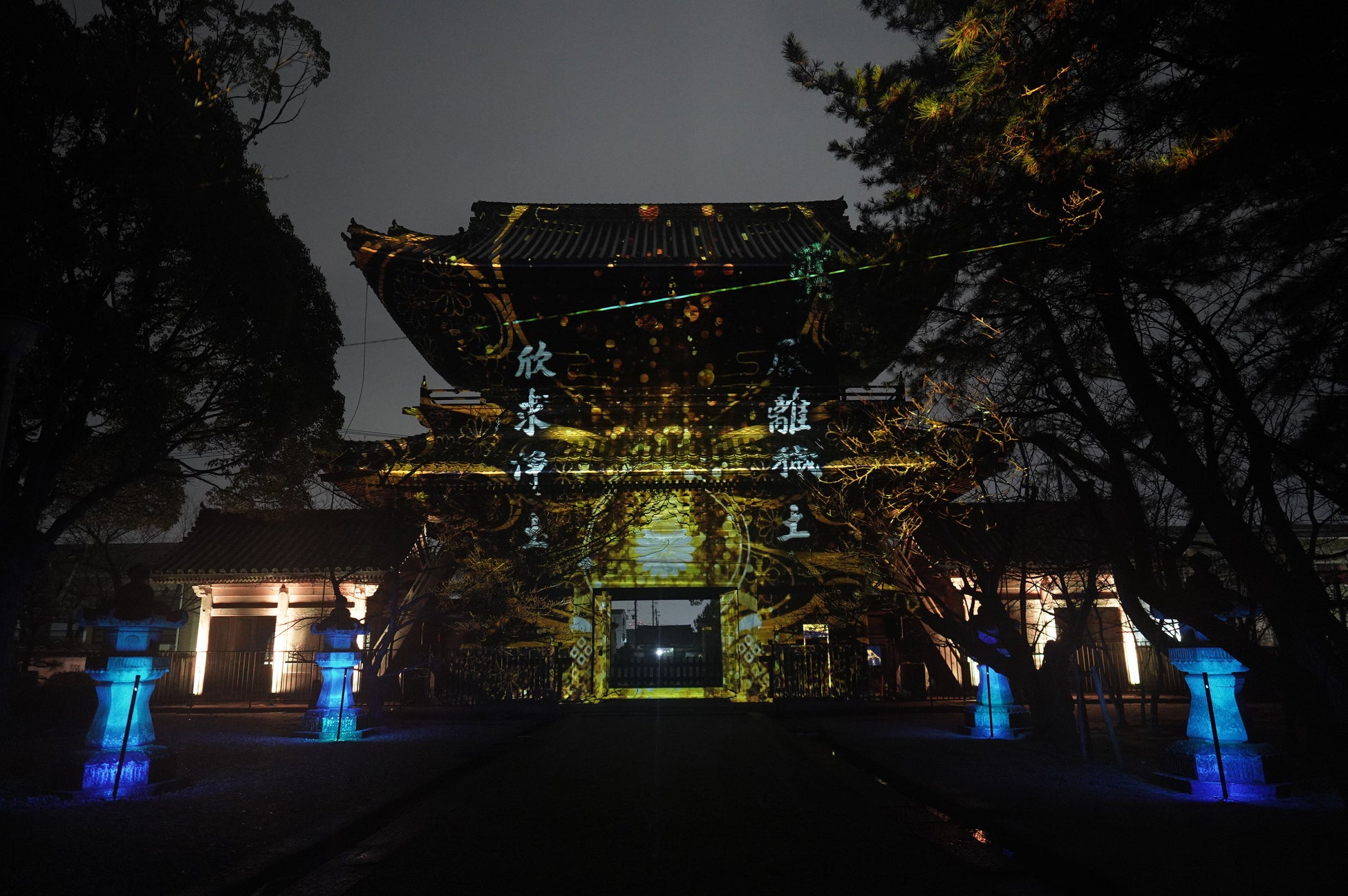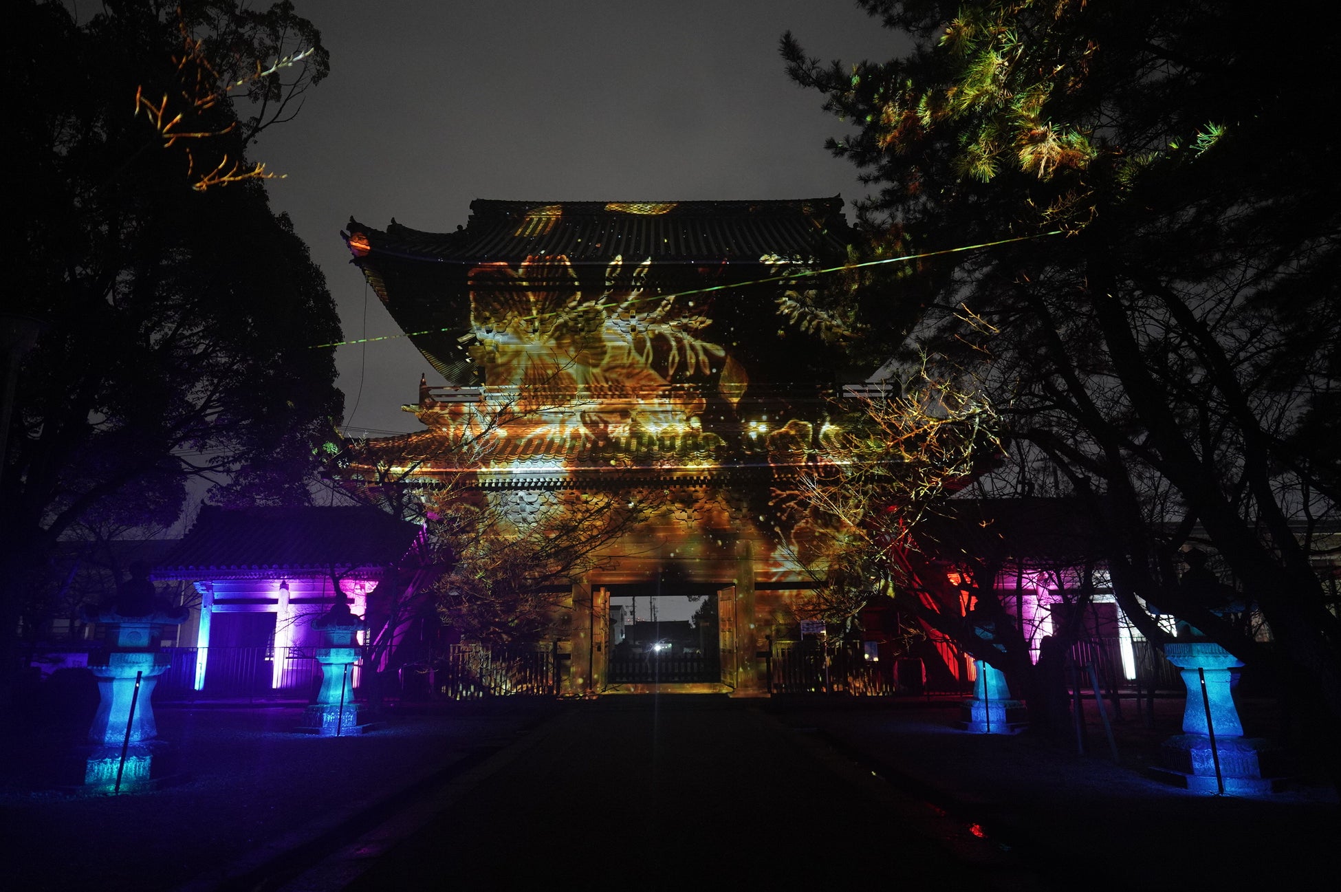 500年の歴史ある本堂や山門などの文化財と最先端のデジタル技術がコラボレーションした豪華絢爛なプロジェクションマッピング。