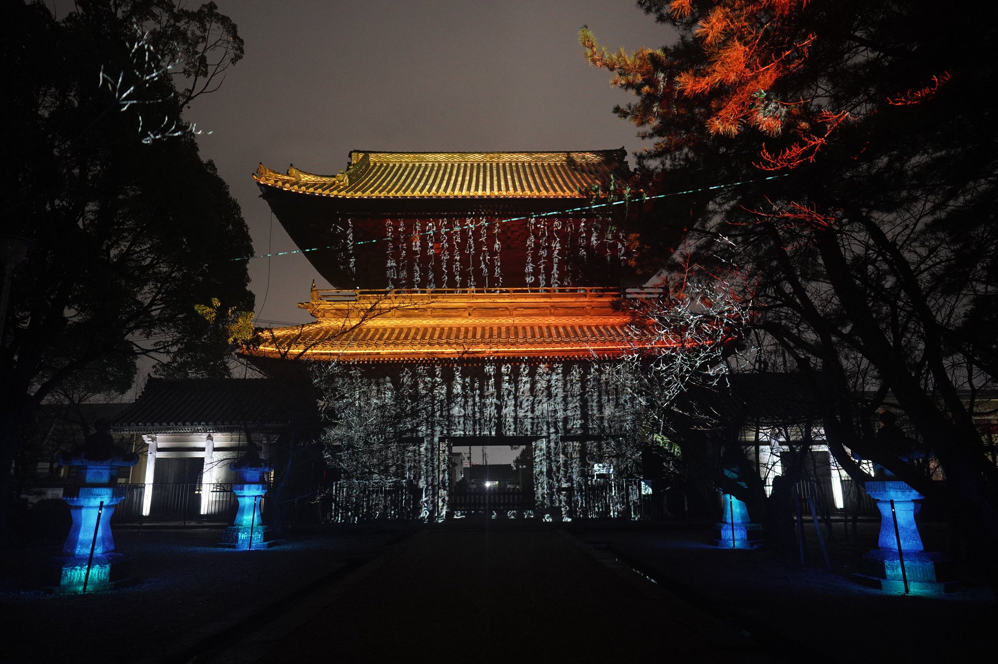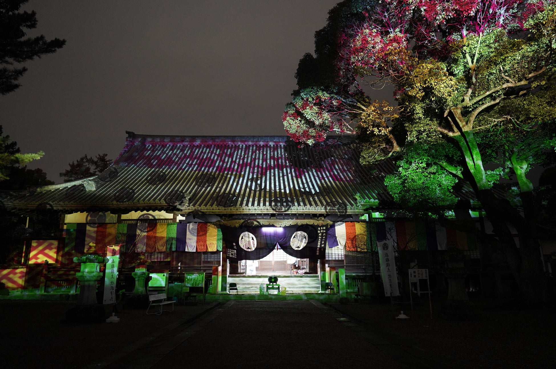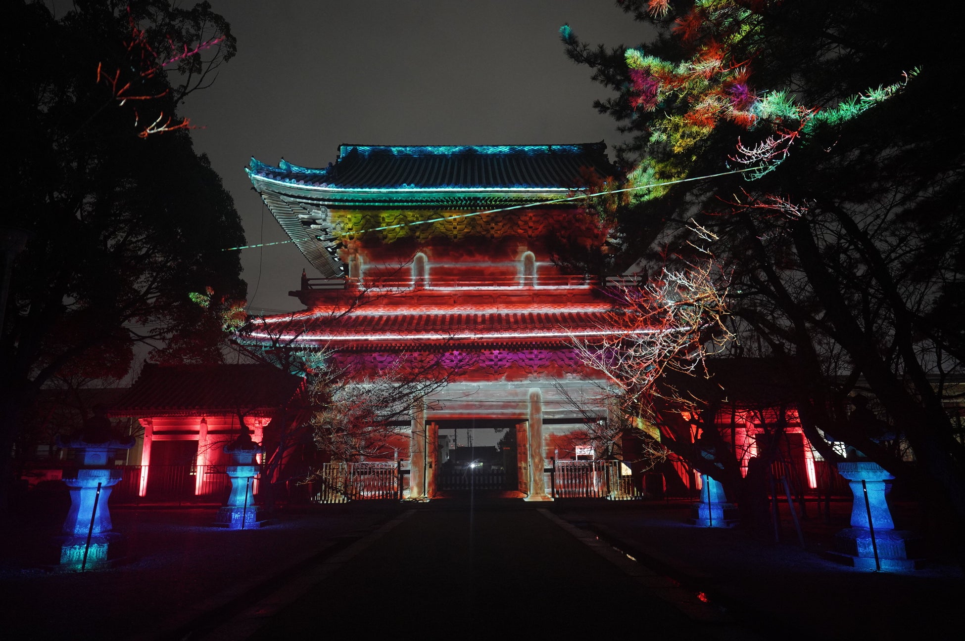 500年の歴史ある本堂や山門などの文化財と最先端のデジタル技術がコラボレーションした豪華絢爛なプロジェクションマッピング。