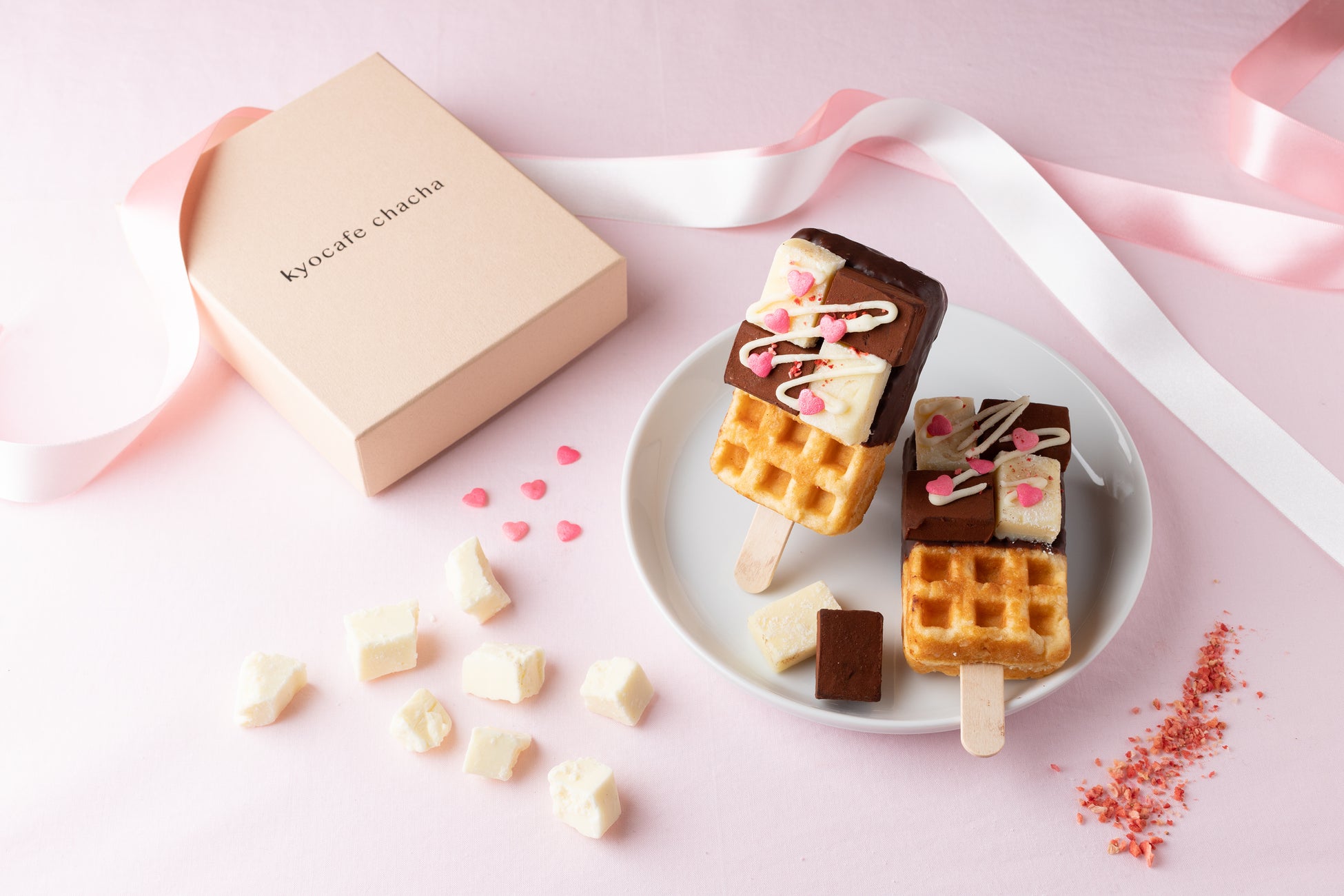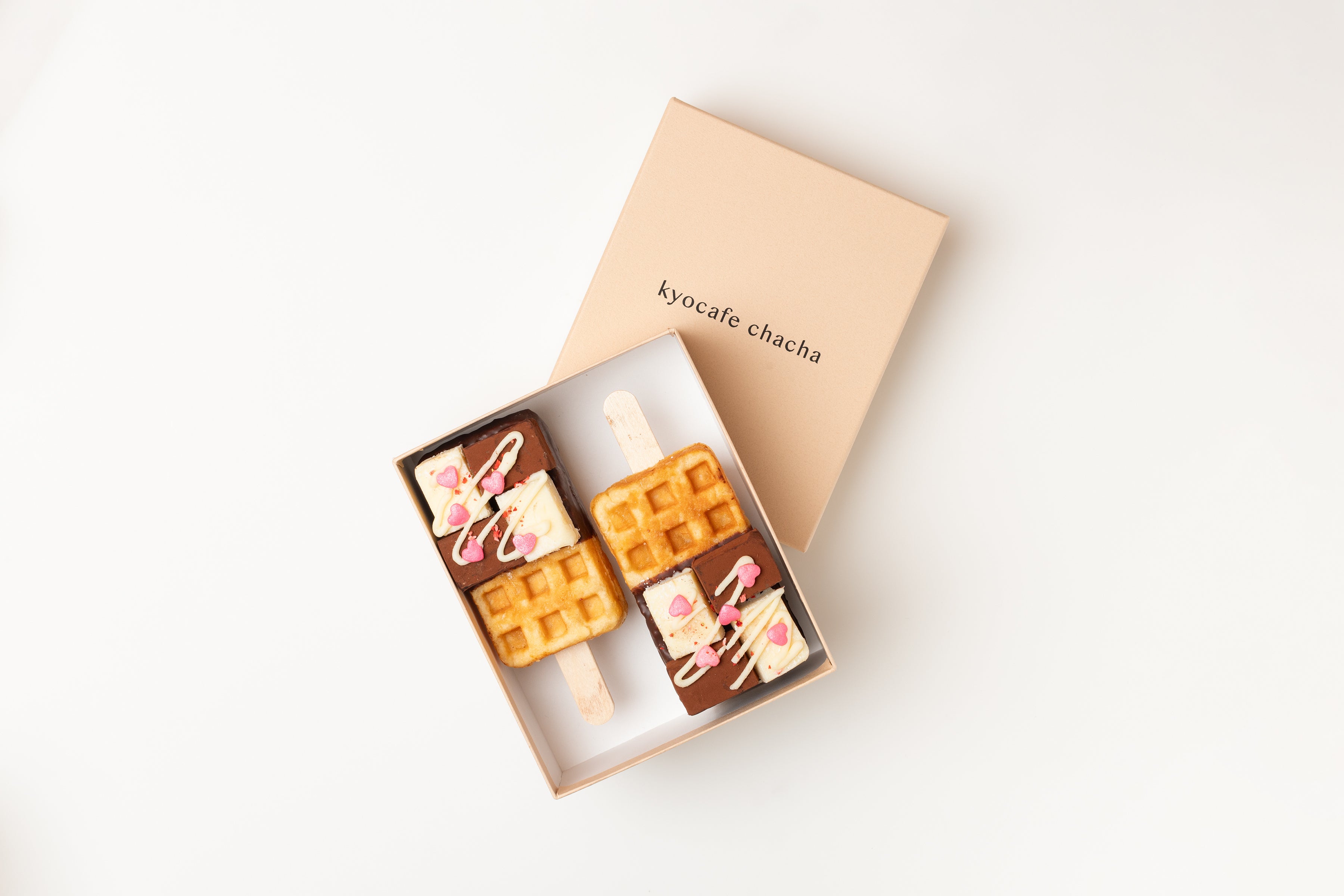 2017年4月より京都で運営しているワッフル専門店「kyocafe chacha」では、可愛くって食べやすいバータイプの新感覚ワンハンドスイーツ「京ワッフル」を販売しております。