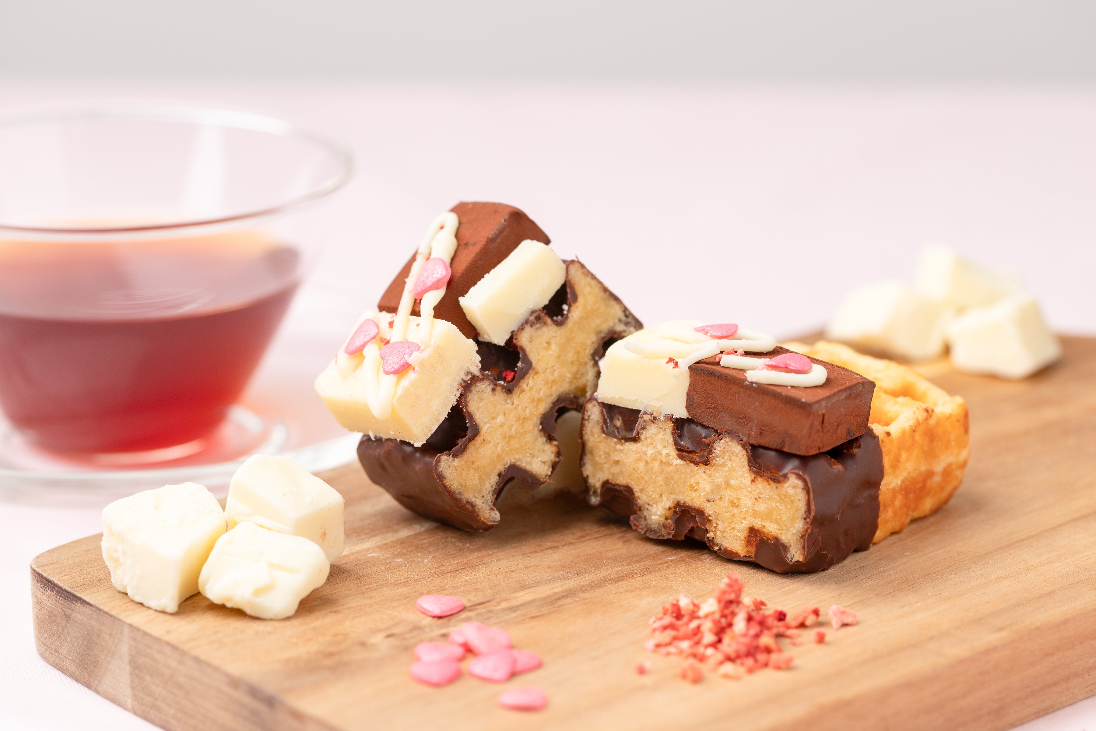 仕上げに、バレンタインで想いを届けるにはぴったりなハートのシュガーをパラパラと乗せて完成。