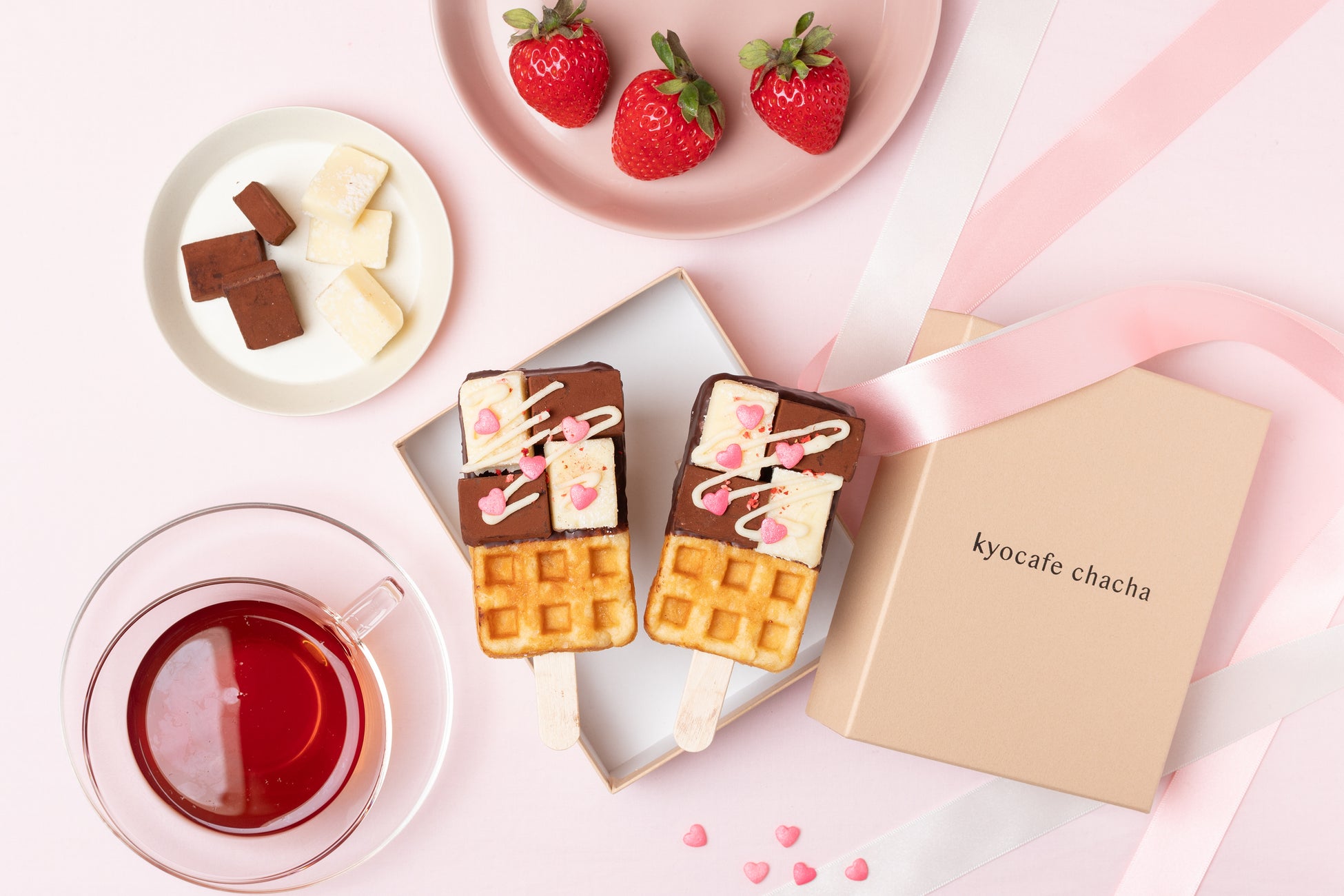 京都での食べ歩きはもちろん、大切な方へのギフトやおうちカフェ、ほっと一息つきたい休憩時間など・・・様々なシーンで、“きゅん”とときめく時間をつくるワンハンドスイーツブランドとして注目されているkyocafe chacha。