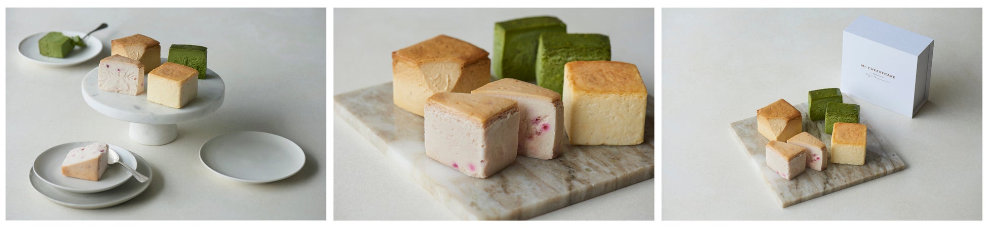 店頭では、定番フレーバーに加え、2024年6月に公式オンラインストアにて販売開始する新たな定番商品「Mr. CHEESECAKE Raspberry Lime」と「Mr. CHEESECAKE Caramel Earl Grey」、「Mr. CHEESECAKE Fine Green Tea」の3種のフレーバーにMr. CHEESECAKEの定番フレーバー「Classic」を組み合わせた、キューブ型ケーキのアソートセット「Mr. CHEESECAKE assorted 4-Cube Standard」も登場します。