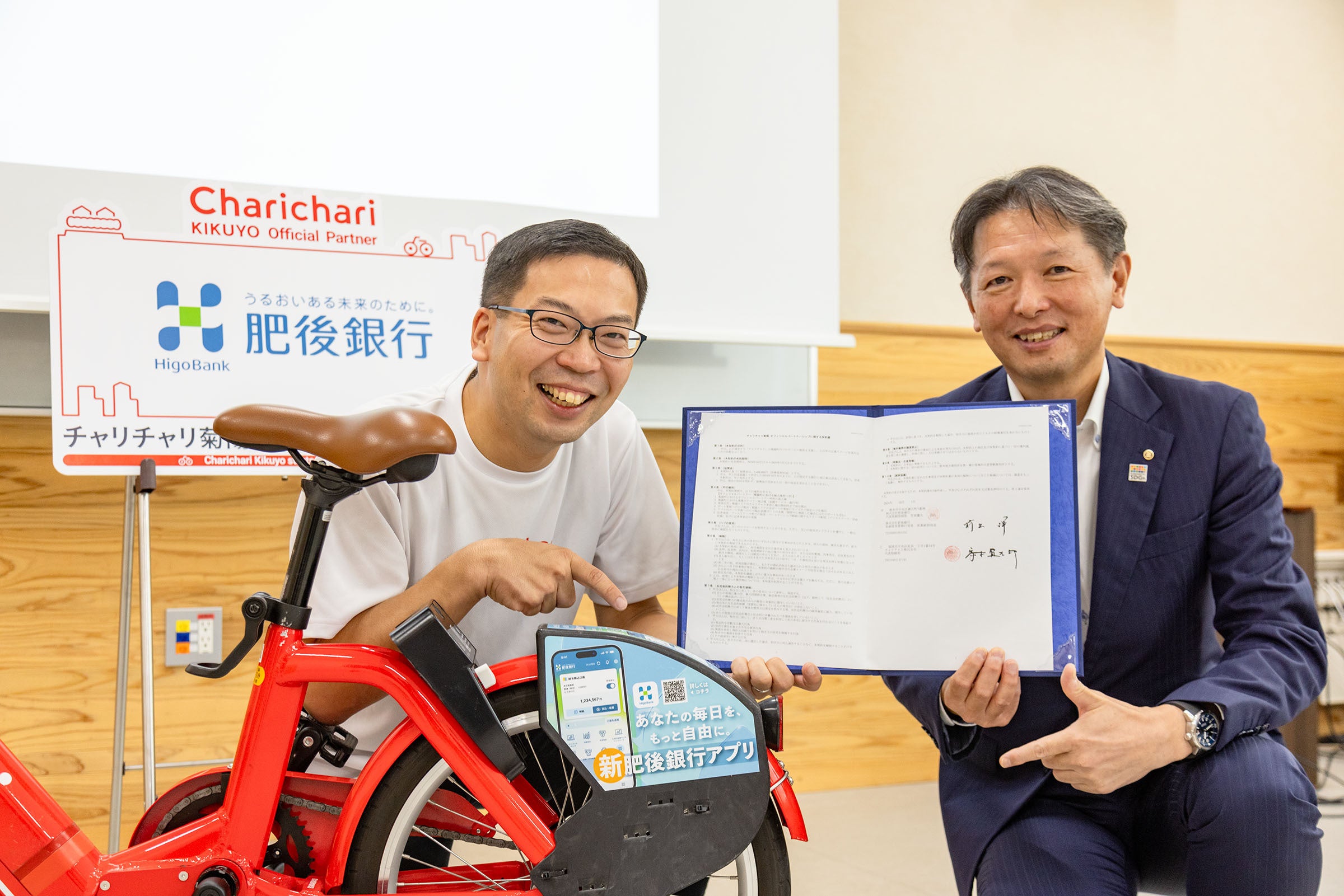 シェアサイクルサービス『チャリチャリ』、熊本県菊陽町でのサービス開始にあたり「出発式」及び「オフィシャルパートナー 調印式」を開催