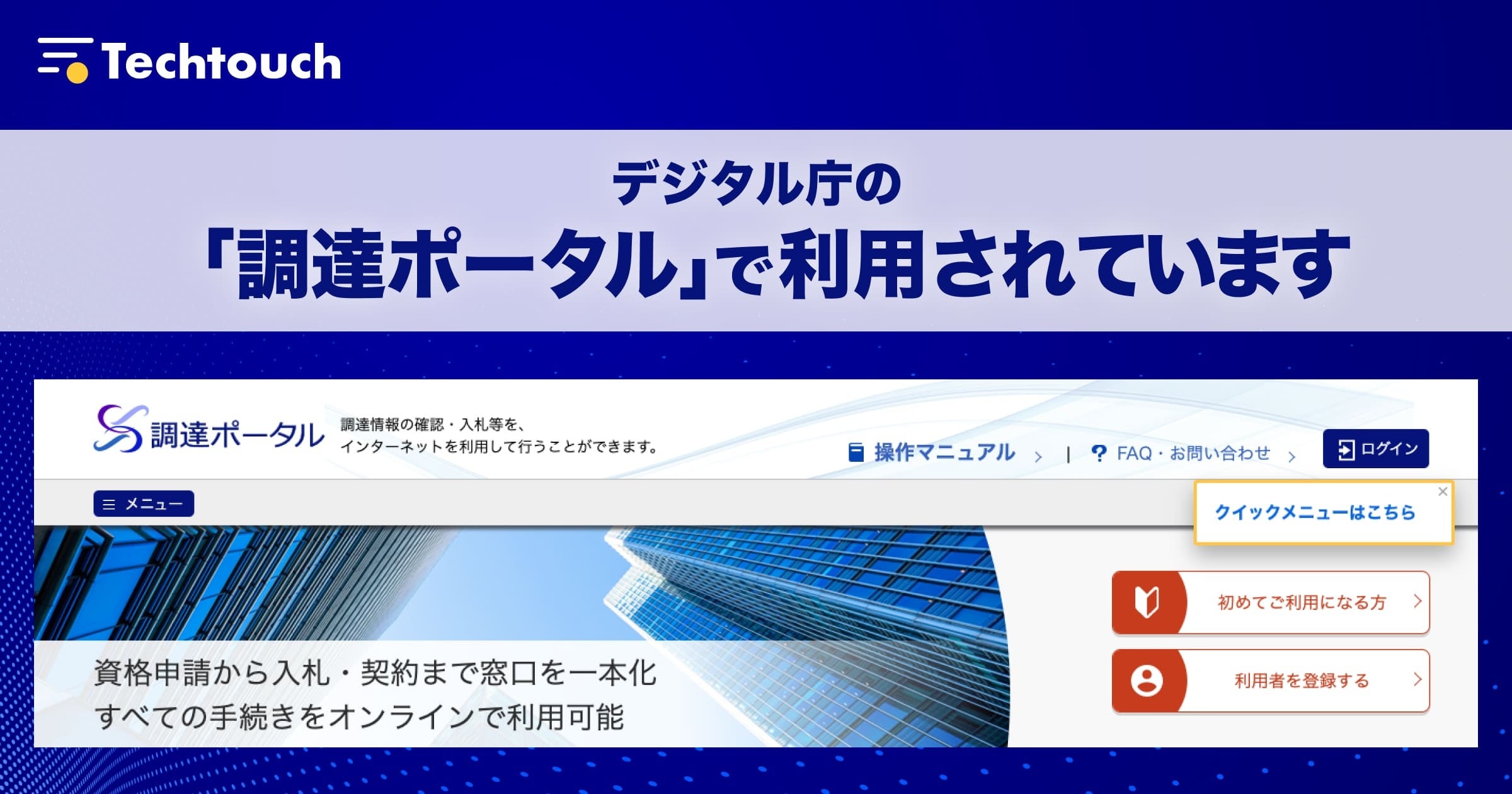 デジタル庁の「調達ポータル」にシステム活用支援サービス「テックタッチ」を利用