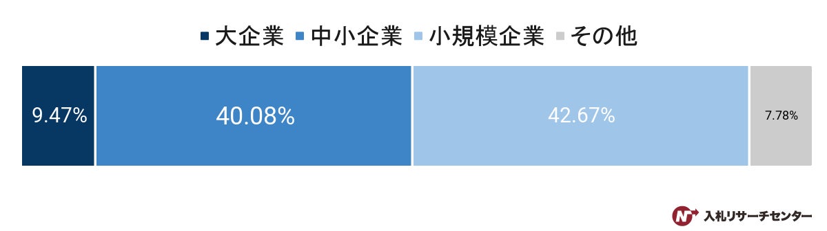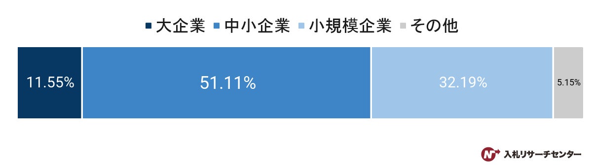 全省庁統一資格保有企業のうち、中小企業は51.11%、小規模企業は32.19%となりました。