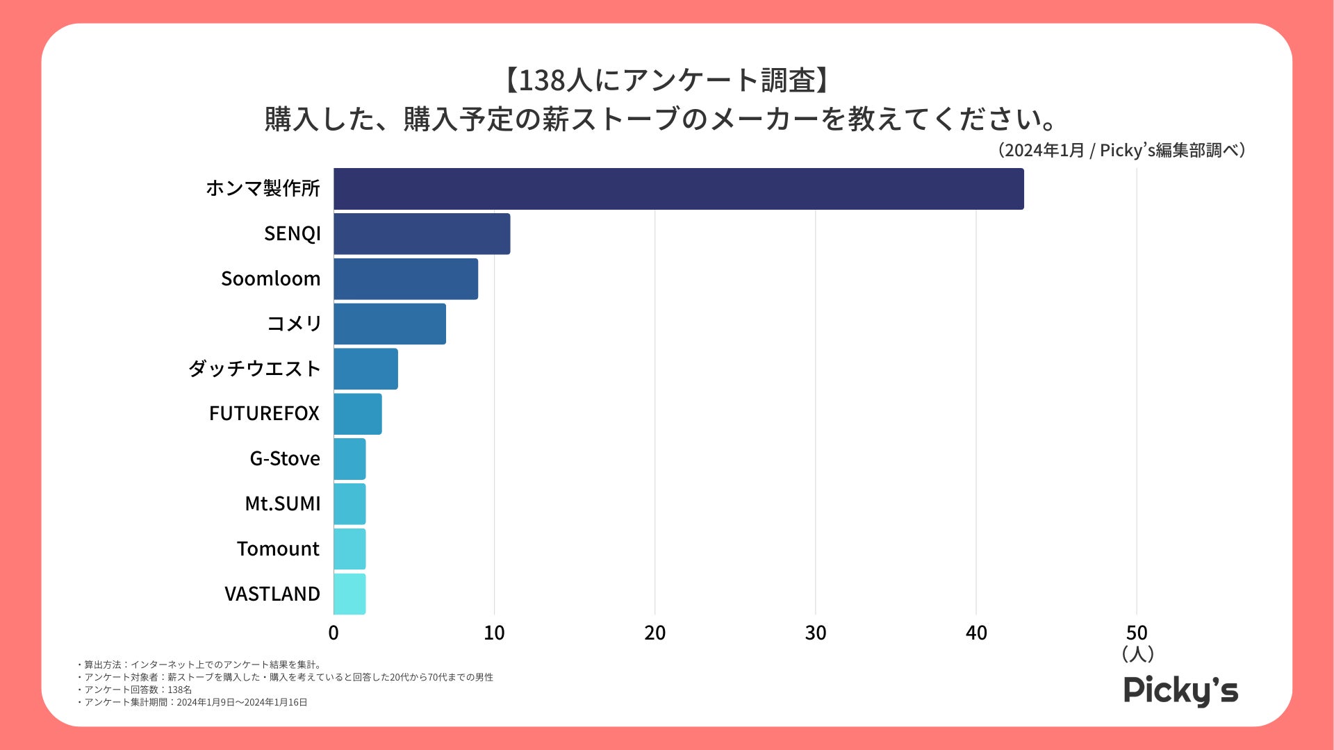 「Picky’s」は、インターネットショッピングにおいて、購入前に試せない・選ぶべきものがわからないという課題の解決を目標に、あらゆる商品のおすすめランキングや検証レビューを紹介するサイトです。このたびPicky’s(https://rentry.jp/note/)では、冬物関連に先駆けて、薪ストーブについてインターネット上でアンケート調査を行いましたので発表いたします。