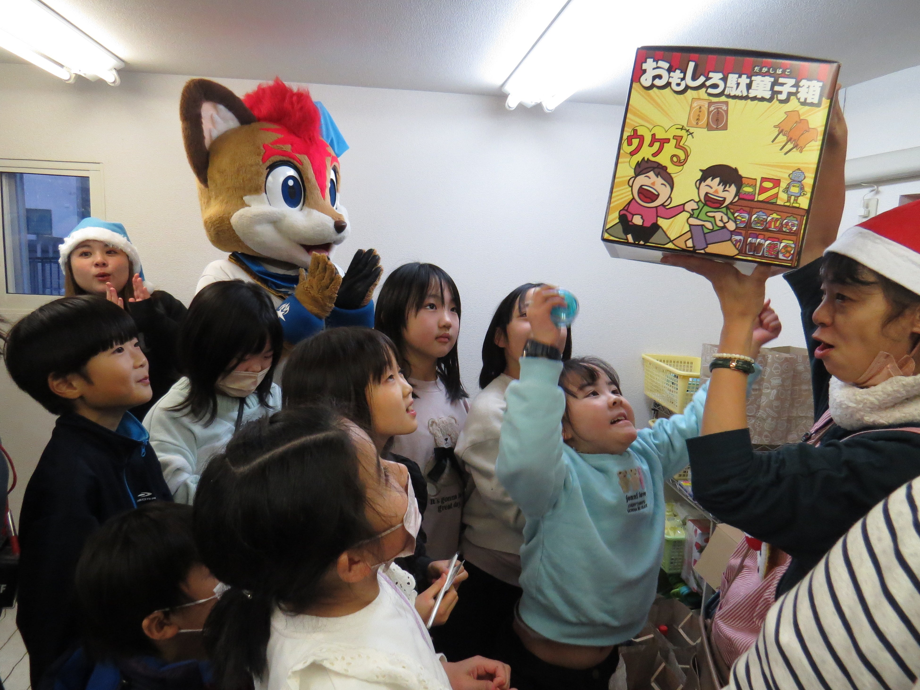 「お弁当やさまざまなお土産を届けてくださり、子どもたちもとても喜んでいました。たくさんの子どもたちが集まって、みんなで食べることができました。知らされていなかった「フレップ」の登場に目をキラキラさせている姿も見られて嬉しかったです。食事や商品をご提供いただいた皆様に感謝しかありません。ありがとうございました」