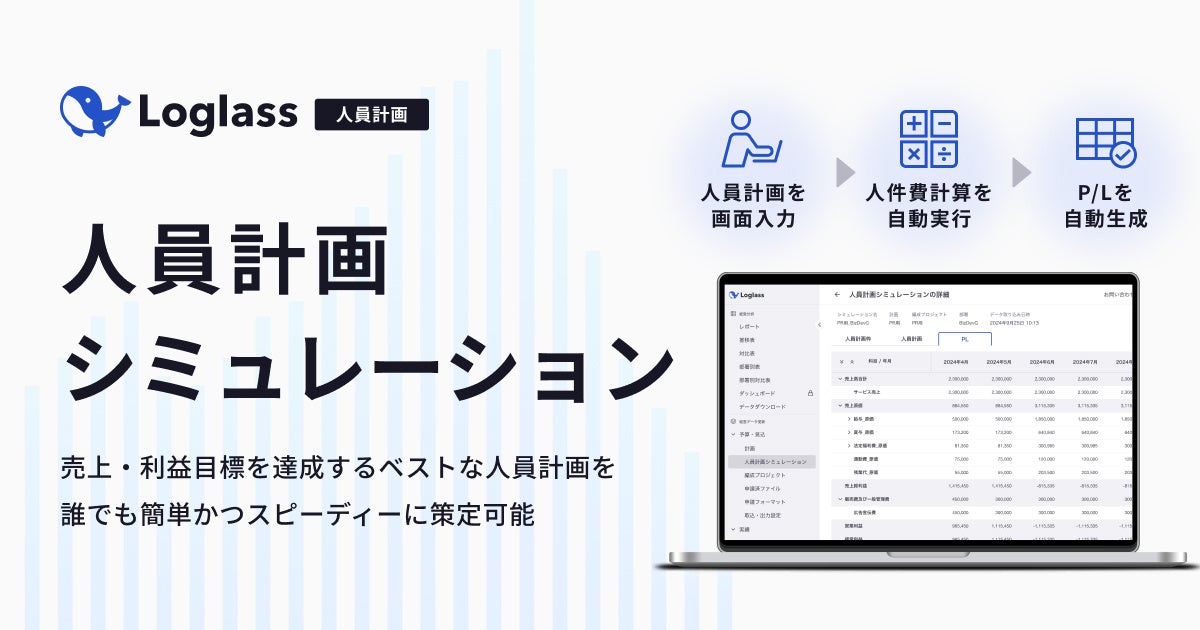 新しいデータ経営の在り方を生み出すDXサービスを提供する株式会社ログラス(本社:東京都港区、代表取締役CEO:布川友也、以下「当社」)は、「Loglass 人員計画」にて、表計算ソフトを介さずに、画面上で人員計画の策定からP/L確認までを完結できる新機能「人員計画シミュレーション」を10月8日(火)より提供開始しました。本機能の提供により、複数パターンの人員計画を検証しながら、売上・利益目標を達成するベストな人員計画を、誰でも簡単かつスピーディーに策定できるようになります。