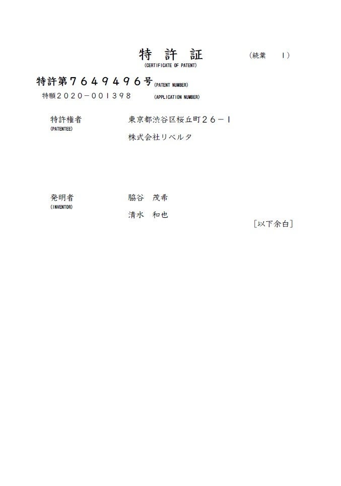 【特許権者】 株式会社タフリーインターナショナル・株式会社リベルタ