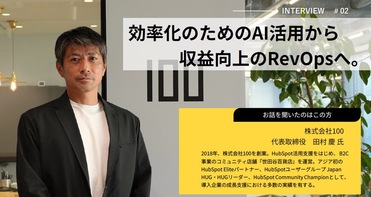 株式会社100 代表取締役 田村慶:「効率化のためのAI活用から収益向上のRevOpsへ」
