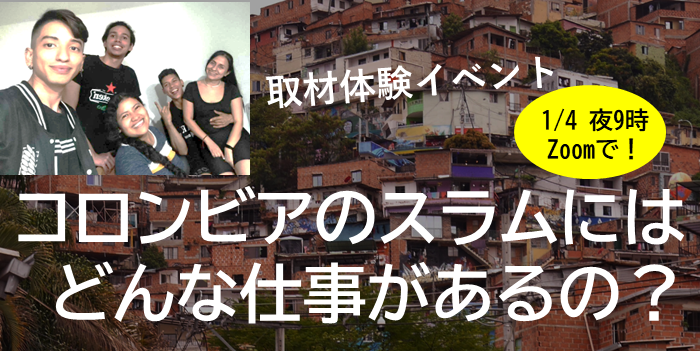 【1/4取材体験イベント】南米コロンビアのスラムにはどんな仕事があるの? Zoomで住人に直接聞こう!