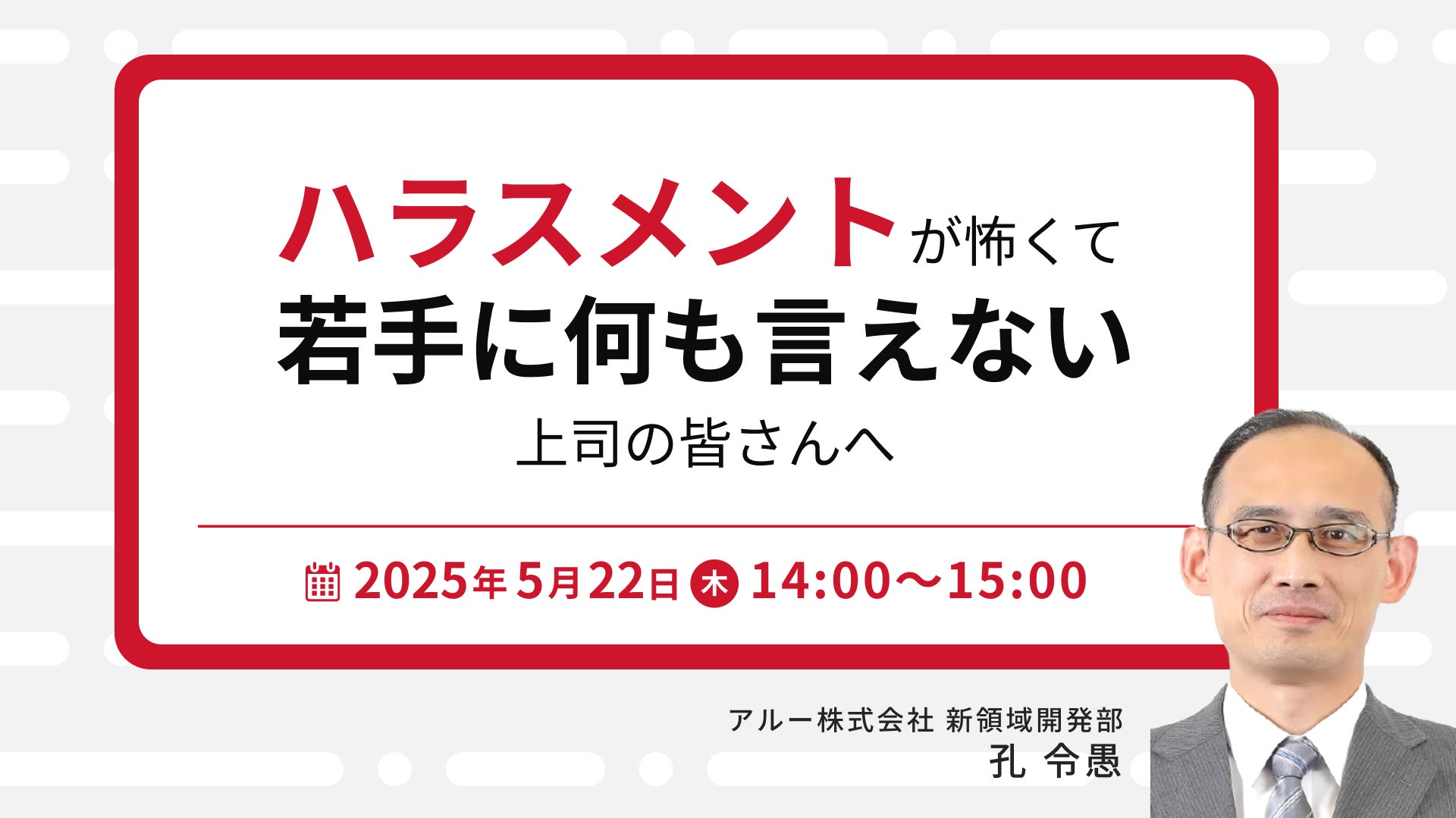 人材育成・社員研修の「アルー」 「ハラスメントが怖くて若手に何も言えない上司の皆さんへ」 無料オンラインセミナー開催のお知らせ