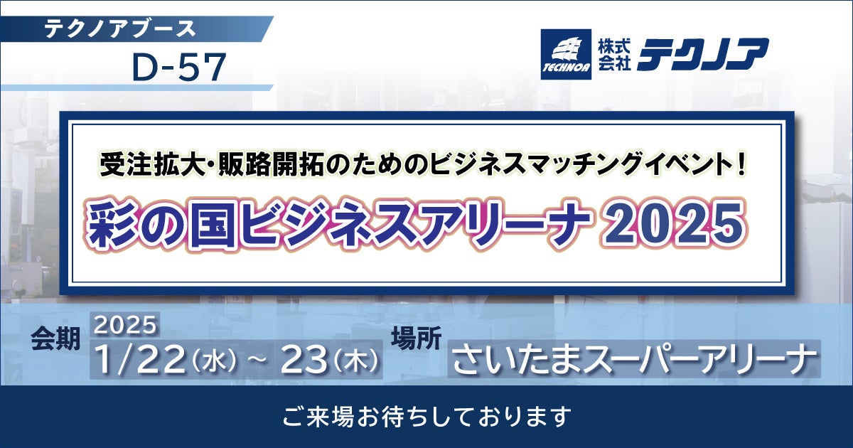 株式会社テクノア(本社:岐阜県岐阜市、代表取締役:山﨑 耕治)は、1/22~23 に さいたまスーパーアリーナ で開催される「彩の国ビジネスアリーナ2025」に出展いたします。
