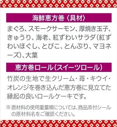 ANAクラウンプラザホテルグランコート名古屋(名古屋市中区、執行役員総支配人:石井 孝治)は、2025.2.2(日)に恵方巻2種の予約販売を実施する。予約期間は2025.1.31(金)まで。海鮮恵方巻¥2,800は限定300本、恵方巻ロール(スイーツ)¥1,800は限定80本での限定予約販売。