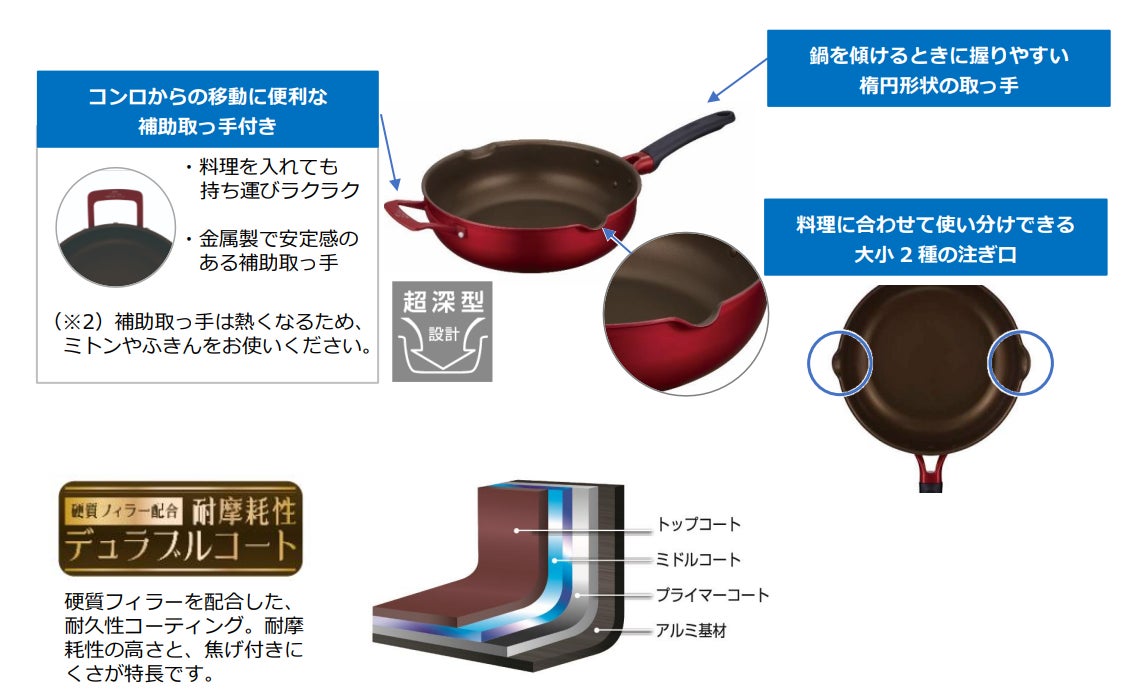 補助取っ手付き!超深型設計で使いやすい『デュラブルシリーズ マルチパン(KFJ/KFKシリーズ)』を8月21日に新発売