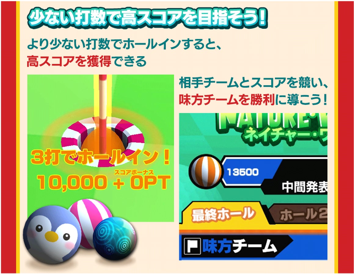 ・操作は引っ張って離すだけ。感覚的にプレイが可能なため、誰でも遊べて、みんなで盛り上がれます。