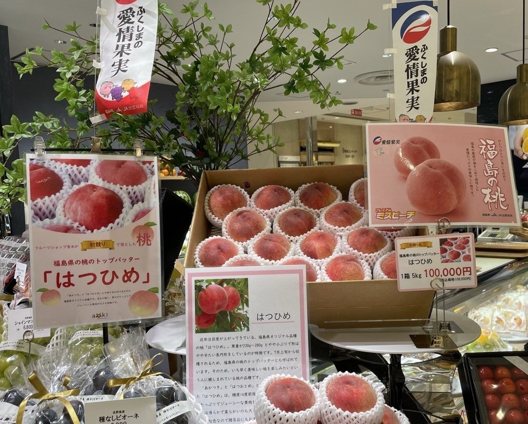 青木フルーツ株式会社(本社:福島県郡山市、代表取締役社長:青木大輔)は、本日2025年7月3日(木)の初競りで競り落とされた福島県産の早生(わせ)品種の桃「はつひめ」を、フルーツ専門店「フルーツショップ青木 本店」「フルーツショップ青木 東武池袋店」にて同日10時頃より販売を開始いたしました。
