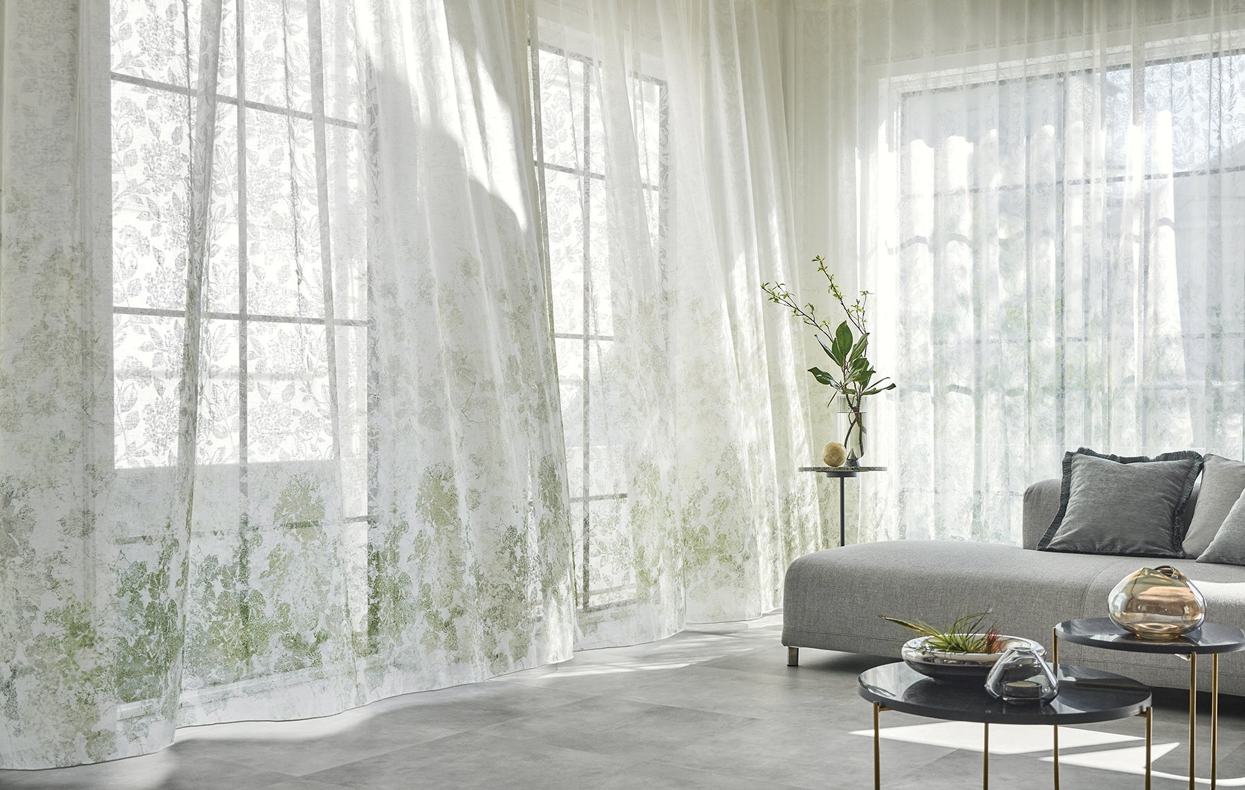意匠性の高い「ストリングス」ならではの刺繍や加工技術を駆使したデザインシアーをバリエーション豊かに収録しました。また、デザイン性の高いシアーにも合わせやすい、無地調ながら表情豊かでリッチな風合いのドレープも拡充。ナチュラルリュクスな空間を演出します。