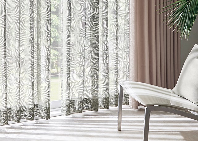 デザイン性の高いファブリックで叶える上質な空間。プライバシーを守り、室内の暑さを和らげるなど、快適な暮らしをサポート