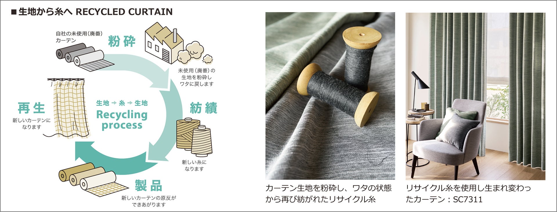 3.カーテンから新たなカーテンへ。資源循環に貢献するリサイクル商品を掲載