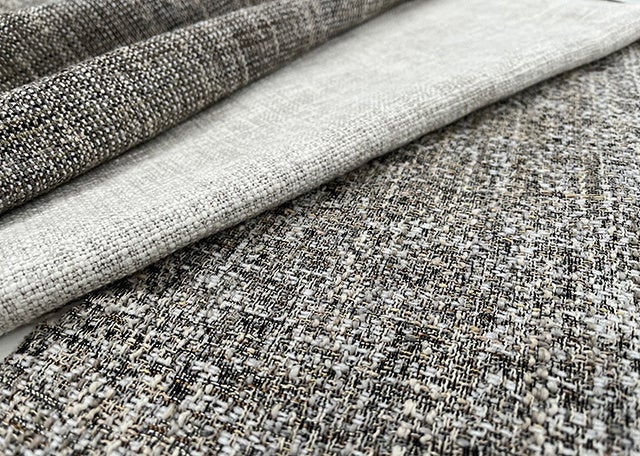 廃番となった未使用の自社カーテン生地を粉砕しワタに戻して紡績した糸を、全体重量の約7%に使用※した、リサイクル商品を、新たに開発しました[SC7309ーSC7311/1柄3点]。